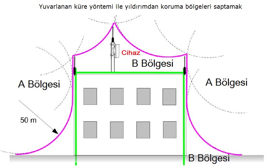 a) Anteni monte etmeden önce antenin kurulacağı yerden daha yüksekte bir nokta olduğundan emin olunuz; anten bu noktanın altında kalsın. Antenin hiçbir bileşeninin düşey doğrultu temel alındığında bulunacak 45 derecelik koruma konisi dışında kalmayacağından emin olun. Basit bir şekilde ifade etmek gerekir ise; anten montajı normal bir bina çatısının altında (duvara karşı) ise daima bu koruma konisi içinde yer almaktadır. Eğer çatıdan daha yüksek, 30m’den daha kısa bir direğe monte ediliyorsa, direğin uç noktası antenin üzerinde olmalı ve antenin tüm bileşenleri 45 derecelik koruma konisi içinde kalmalıdır. Hem montaj direği hem de anten bağlantısı genel topraklama koşullarına göre topraklanmalıdır.