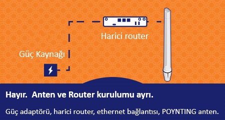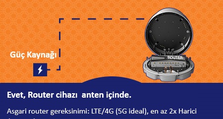 Mevcut kurulum koşullarına göre router modem tekne sistem odasında konumlandırılabilir veya 4G | 5G anten içine yerleştirilebilir.