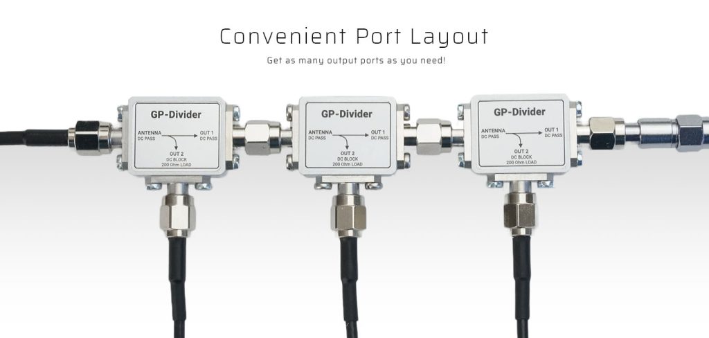 GP-Divider tüm GNSS takımyıldızlarını destekler ve tüm frekans bantlarını kapsar. Frekans aralığı: 1,15 GHz – 1,65 GHz.