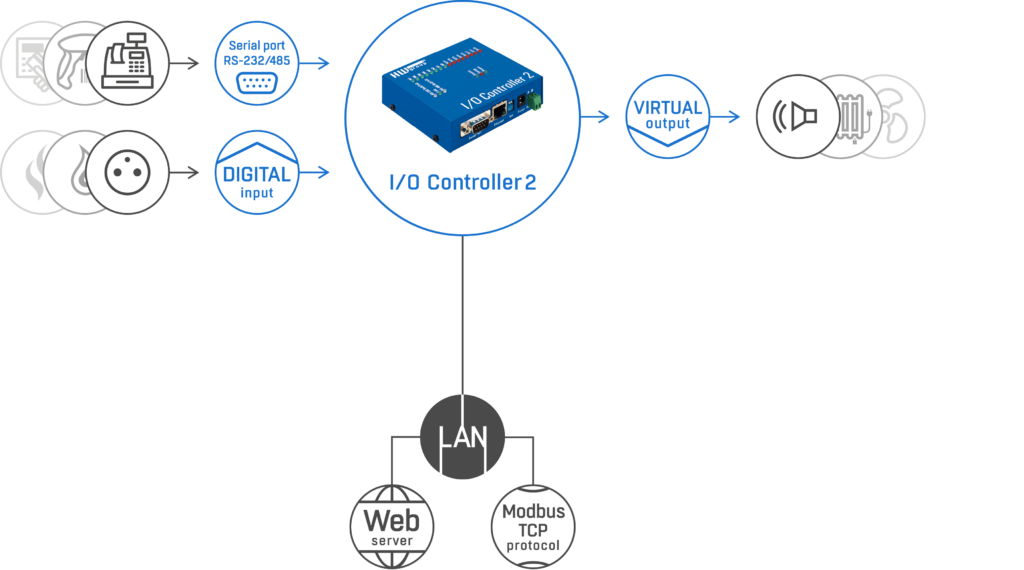RS-232 (485) seri port ve sayısal I/O – Ethernet çevirici
