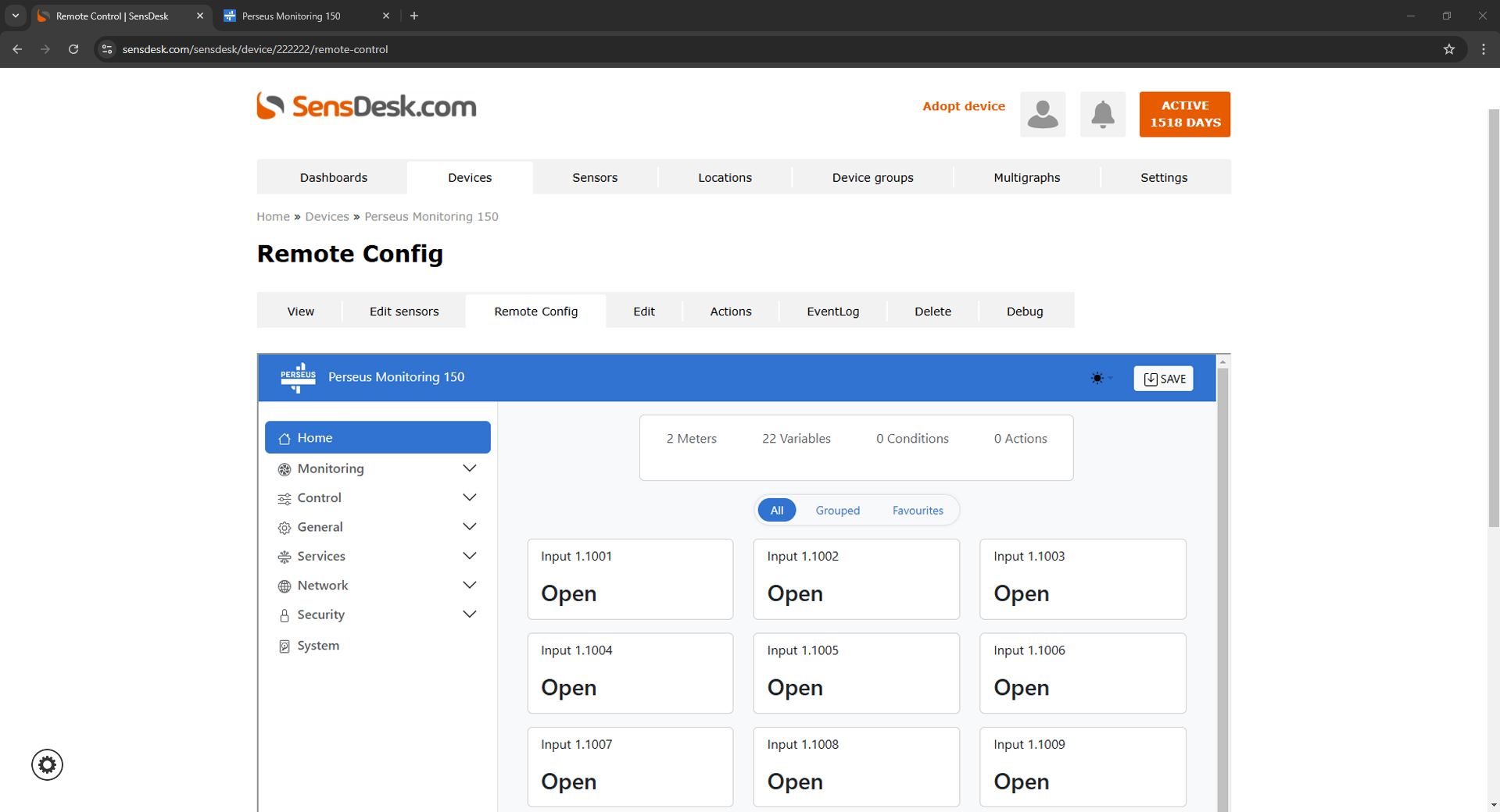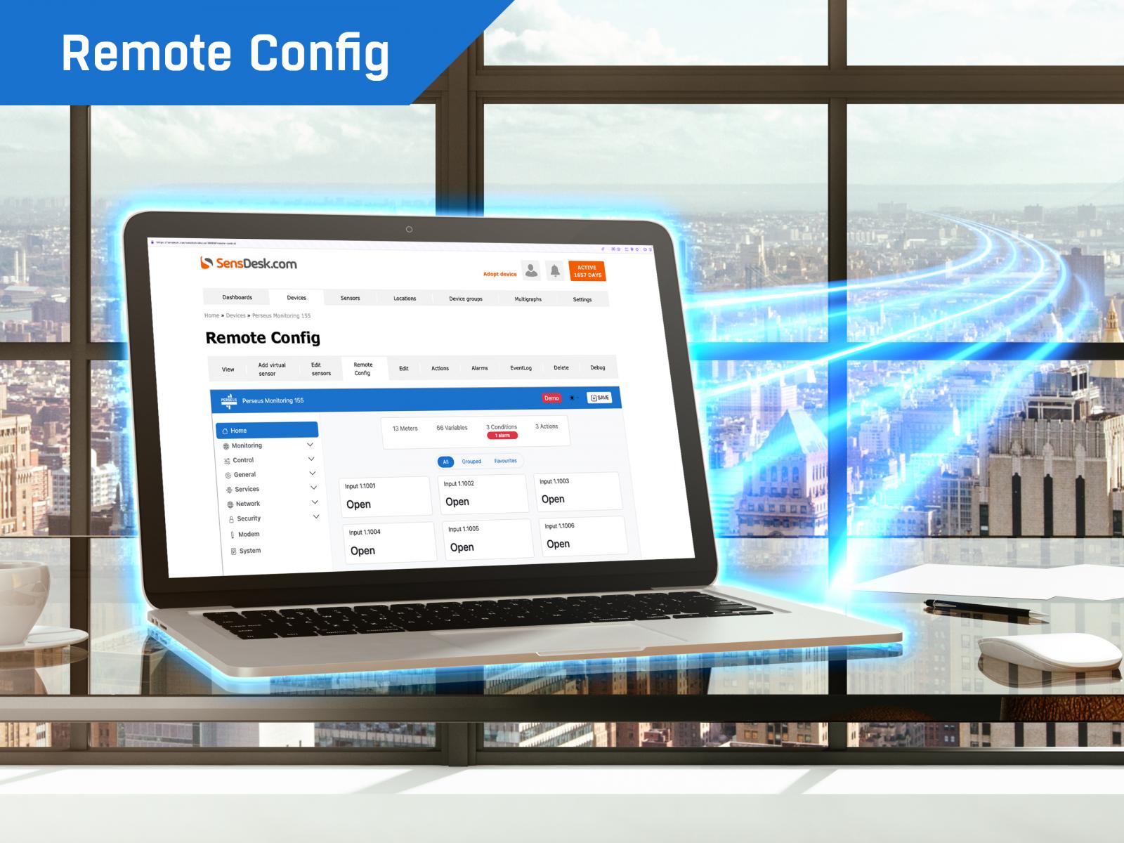 Remote Config ile, Perseus cihazının web arayüzüne portalın web arayüzü üzerinden erişmek artık olası. Bu, herhangi bir Perseus cihazını, sanki masanızdaymış gibi SensDesk Teknolojisi tabanlı portal üzerinden uzaktan yapılandırabileceğiniz anlamına gelmekte.