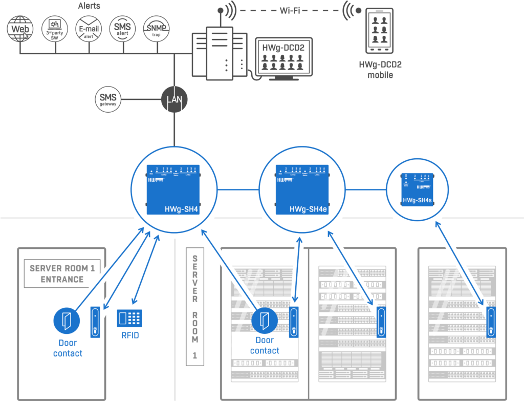– RS-485 bus özelllikli, 24 sıcaklık/nem sensör desteği
