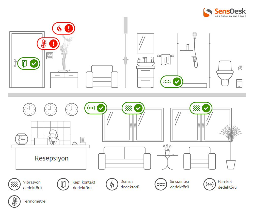 SensDesk portalı ve HW grup IoT cihazları, birçok otel ve pansiyonlar için bir dizi çözümde başarıyla konuşlandırılmıştır.