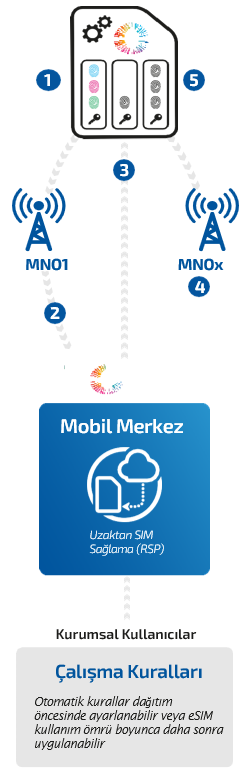 5 SIM üzerindeki yönetim uygulamasında saklanan çoklu IMSI iş kuralları, dağıtımdan sonra OTA üzerinden (havadan) güncellenebilir.