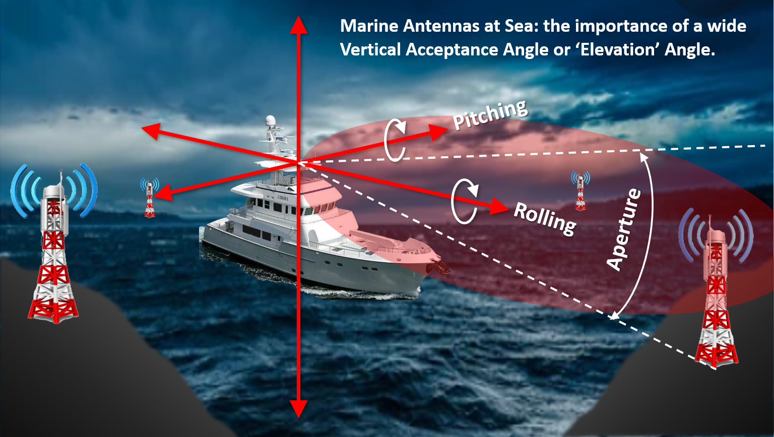 Çalkantılı denizler için en önemli husus, elbette Geminin Pitch (öne-arkaya) ve Roll (sağa sola) yatma’ dır. Bu, teknede kurulu Anten/Antenlerin ‘Yükseklik’ veya ‘dikey açıklığı’ için bir gereksinim oluşturur.
