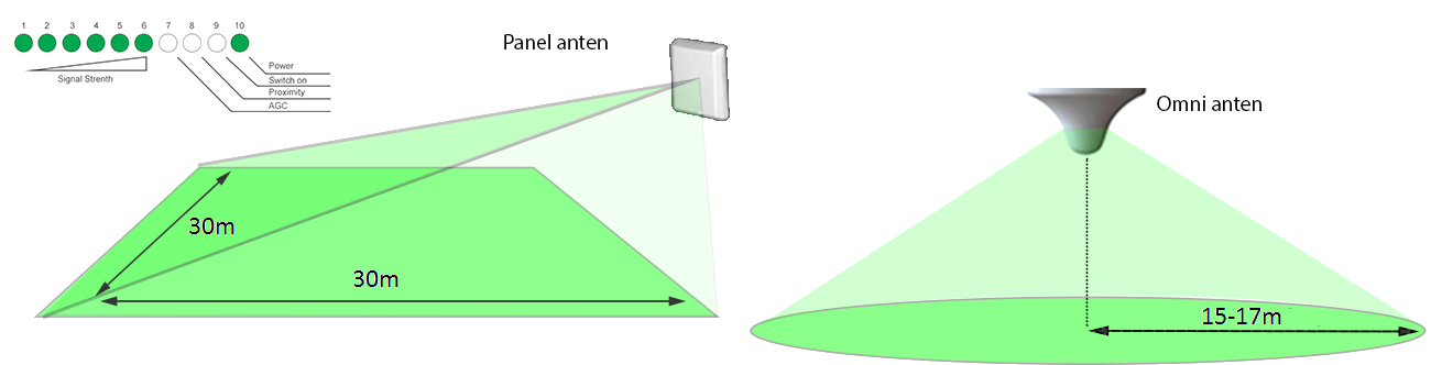 Tekrarlayıcıda 6 yeşil LED varsa, iç mekan anteninden gelen sinyal 30x30m’yi (açık alan) kaplayacaktır. Çok yönlü tavana monte anten (Omni) kullanırsanız, sinyal 17m yarıçaplık bir alanı kapsar. (Nüfusu 1 milyondan fazla olan yoğun şehirlerde bu mesafe 15 m’ye düşer.)