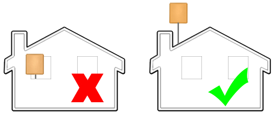 3) Harici anten, metal yoğunluğu yüksek bir duvarın veya binanın arkasına veya net bir sinyal alamadığı ve gönderemediği bir konuma monte edilir. Temiz bir sinyal almak için anteni mümkün olduğunca yükseğe monte etmek en iyisidir.