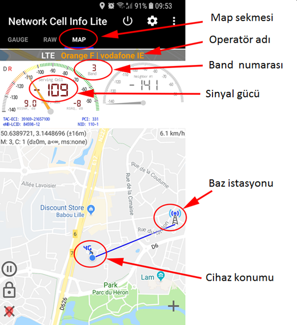 Ayrıca, bağlı olduğunuz (hizmet aldığınız) operatör baz istasyonu Google haritalarında da gösterilir.