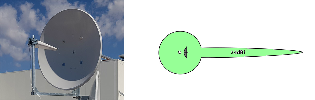 Parabolik çanak anten, 15 Derece ışın yayım genişliğine ve 24dBi’lik çok yüksek bir kazanca sahiptir. Nüfusu 1 milyondan fazla olan yoğun kentsel şehirlerde kullanılmalıdır.