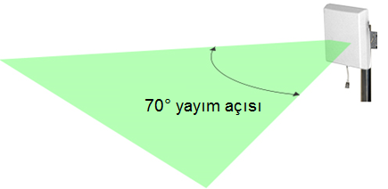 Dış panel anteni, 70 derecelik bir ışın yayım açısına (genişliğine) sahiptir. Böylece binanın etrafında 70 derecelik alan içinde bulunan tüm operatörler için sinyali güçlendirir. Sinyal, antenin beyaz tarafının ön yüzünden gelir.