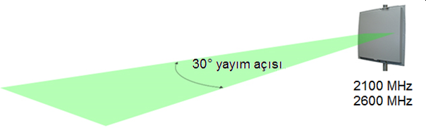 2100MHz ve 2600MHz anten 30 derecelik bir ışın yayım açısına (genişliğine) sahiptir ve daha yüksek kazançlıdır.