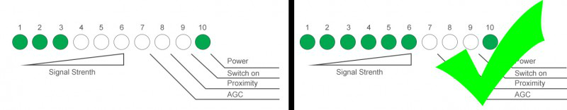 10dB’den fazla azaltması gerekiyorsa, kırmızı LED yanacaktır. Tekrarlayıcı düzgün çalışmaya devam eder. Sadece gelen sinyalin güçlü olduğuna ilişkin bir uyarıdır.