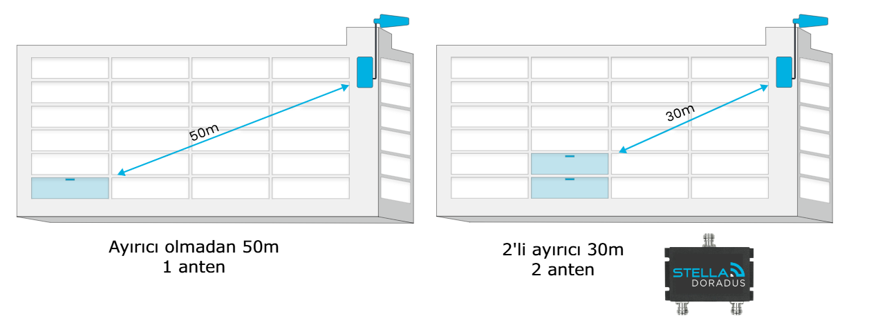 Bu entegre teknoloji, cihaza bağlı bir antenin iç veya dış anten portuna bağlandığını otomatik olarak algılar. Yeni Akıllı antenlere beyaz bir LED entegre edilmiştir. Ek olarak, tekrarlayıcının portlarında beyaz bir LED bulunur. Kablolar ve antenler doğru şekilde bağlandığında, bu iki beyaz LED yanar ve kurulum sırasında anten/kablo bağlantısınında hata olmadığını işaret eder. LED’ler yanmazsa, muhtemelen kablolarda ve/veya konnektörlerde bir sorun vardır ve bu nedenle incelenmelidir.